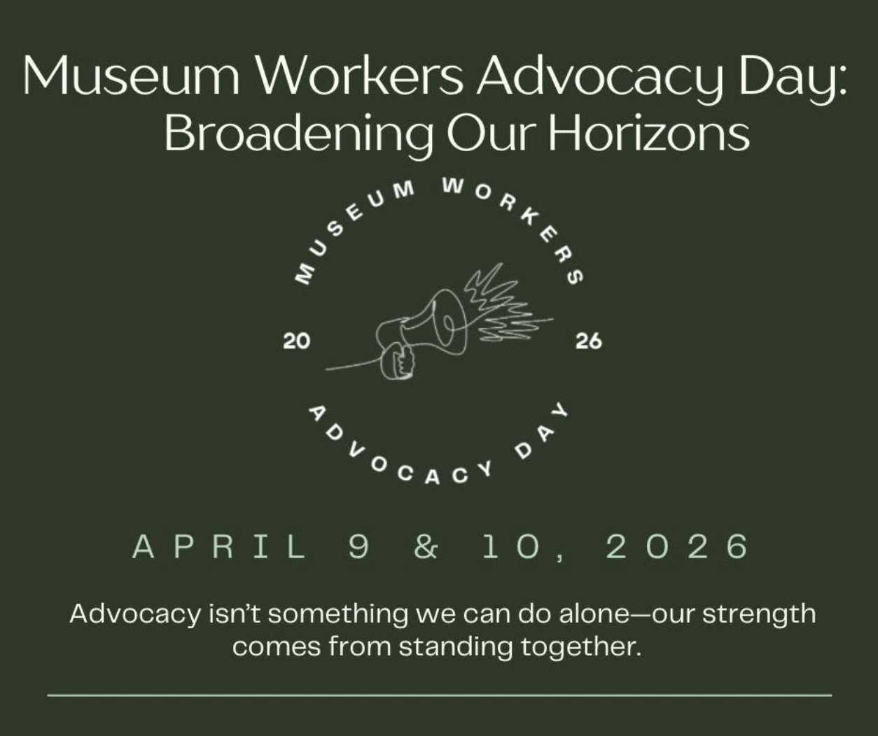 This year’s Museum Workers Advocacy Day will take place digitally on April 9th and 10th, 2026.